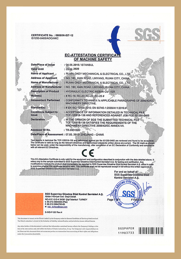 浙江歐凱機電有限公司,原瑞安市歐凱機電有限公司,成立于2003年,經過十幾年的不懈發展,2018年被評為省高新技術企業。本公司專業生產和研發便攜式電動液壓鋼筋切斷機、彎曲機、沖孔機、液壓泵以及充電式液壓工具、全...